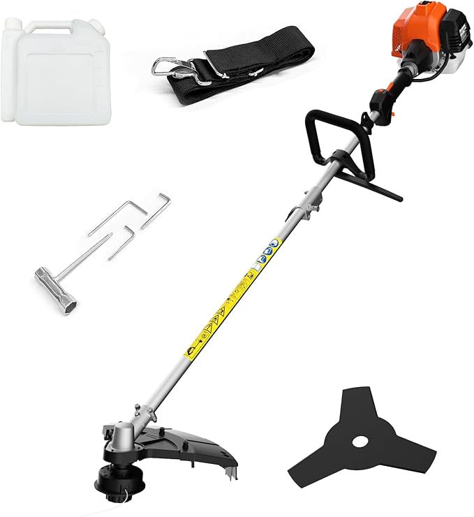 This tool’s 2-in-1 design lets users swap between a 10-inch brush cutter blade and a precision trimmer head. Whether you need to clear thick branches or tidy up edges, this gas trimmer adapts seamlessly.