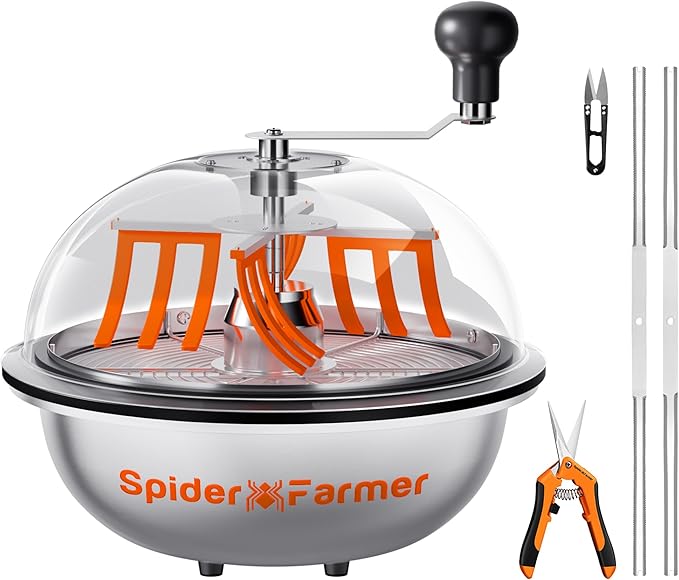 Experience a faster and cleaner trimming process with the 13 Inch Bud Leaf Bowl Trimmer, designed to save you valuable time. Its robust hand crank mechanism combined with sharp stainless steel blades transforms trimming into a smooth and effortless task.